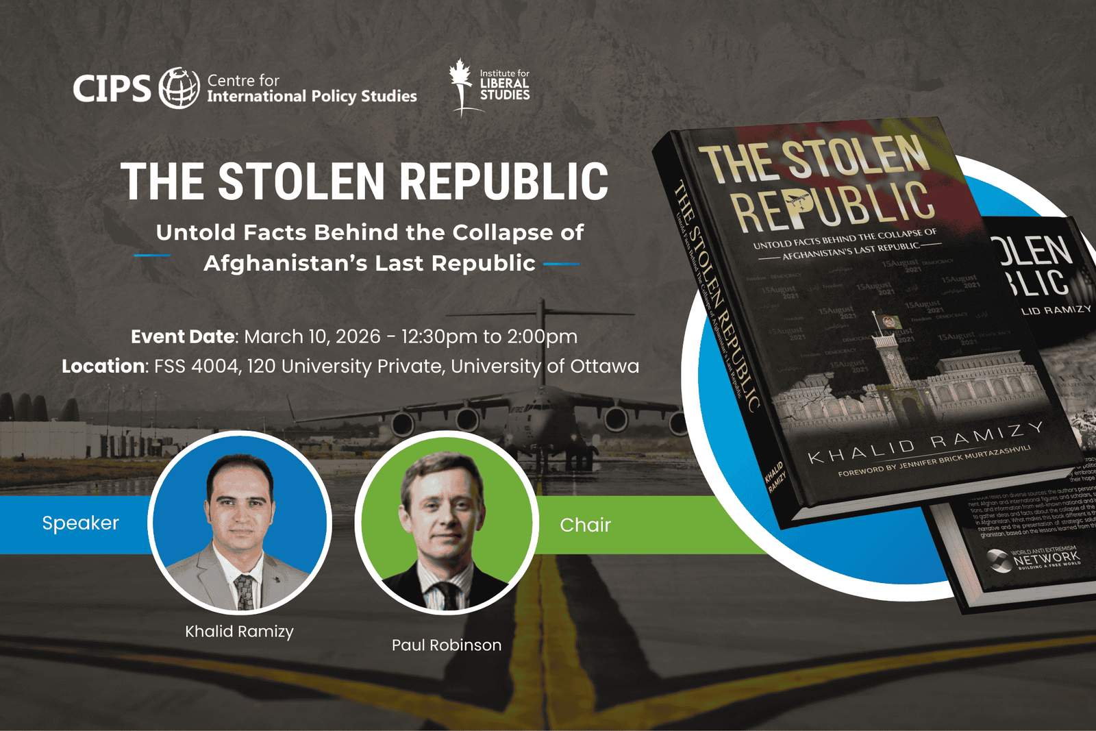 On March 10, 2026, Khalid Ramizy, Founder and CEO of the World Anti Extremism Network (WAEN), will speak at the University of Ottawa about his book, ‘The Stolen Republic: Untold Facts Behind the Collapse of Afghanistan’s Last Republic.’