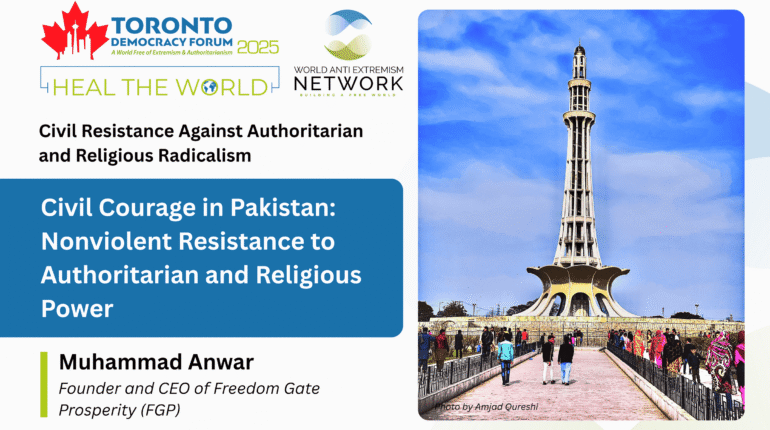 Since its independence in 1947, Pakistan has cycled through multiple periods of military rule and waves of religious radicalism that have repeatedly constrained democratic development and civic freedoms. In this piece, the author Muhammad Anwar, Chief Executive Officer of Freedom Gate Prosperity, examined how ordinary citizens like lawyers, students, women, artists, and grassroots activists have deployed nonviolent strategies to reclaim political space and cultural agency. He also highlighted three interlinked dimensions of Pakistan’s civil resistance. This excerpt argues that authoritarianism and extremism flourish where fear goes unchallenged, while solidarity, civic action, and cultural expression open pathways to democratic renewal.